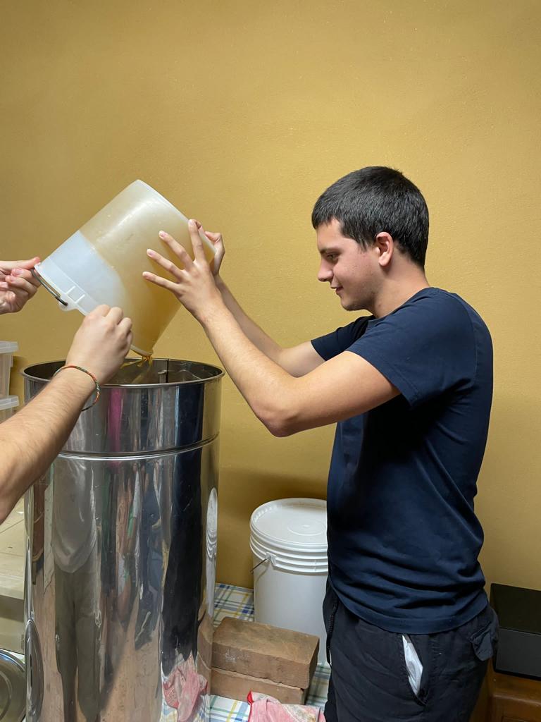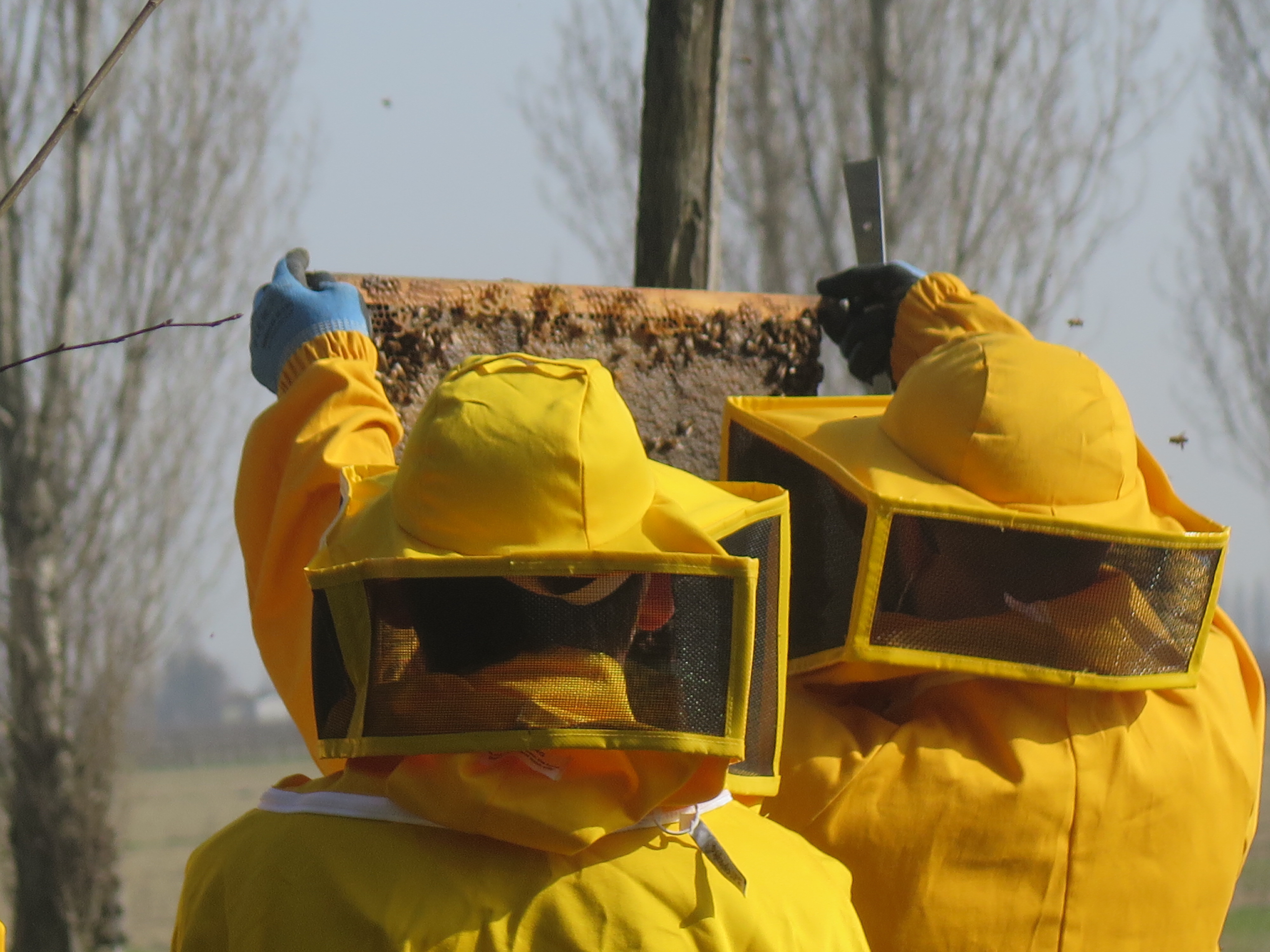 dell’acacia, si entra nel vivo della stagione produttiva, che richiede attenzione e coraggio, per scovare l’astuta regina in procinto di sciamare, o per affrontare con fermezza uno sciame di 50.000 operaie intente a difendere il loro prezioso nettare. Non tutti i ragazzi sono disposti ad affrontare questo lavoro, tanto avvincente quanto rischioso, ma il gruppo intero si riunisce con gioia nel giorno della smielatura: un’opera sinergica in cui pochi gesti elementari permettono a tutti di estrarre il miele dai favi, un autentico oro che cola, che colma vasi da chiudere e gustare a tempo debito.
