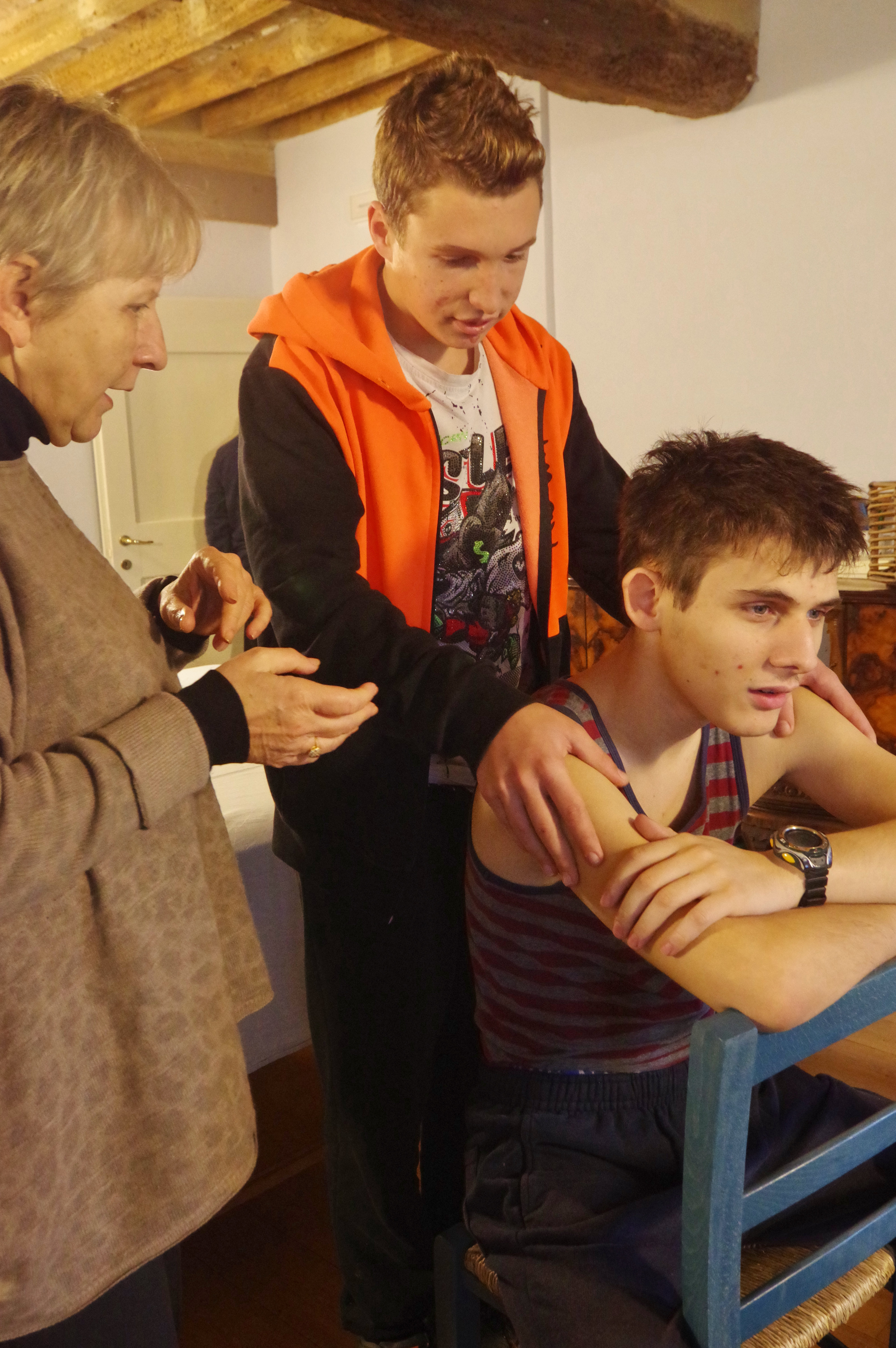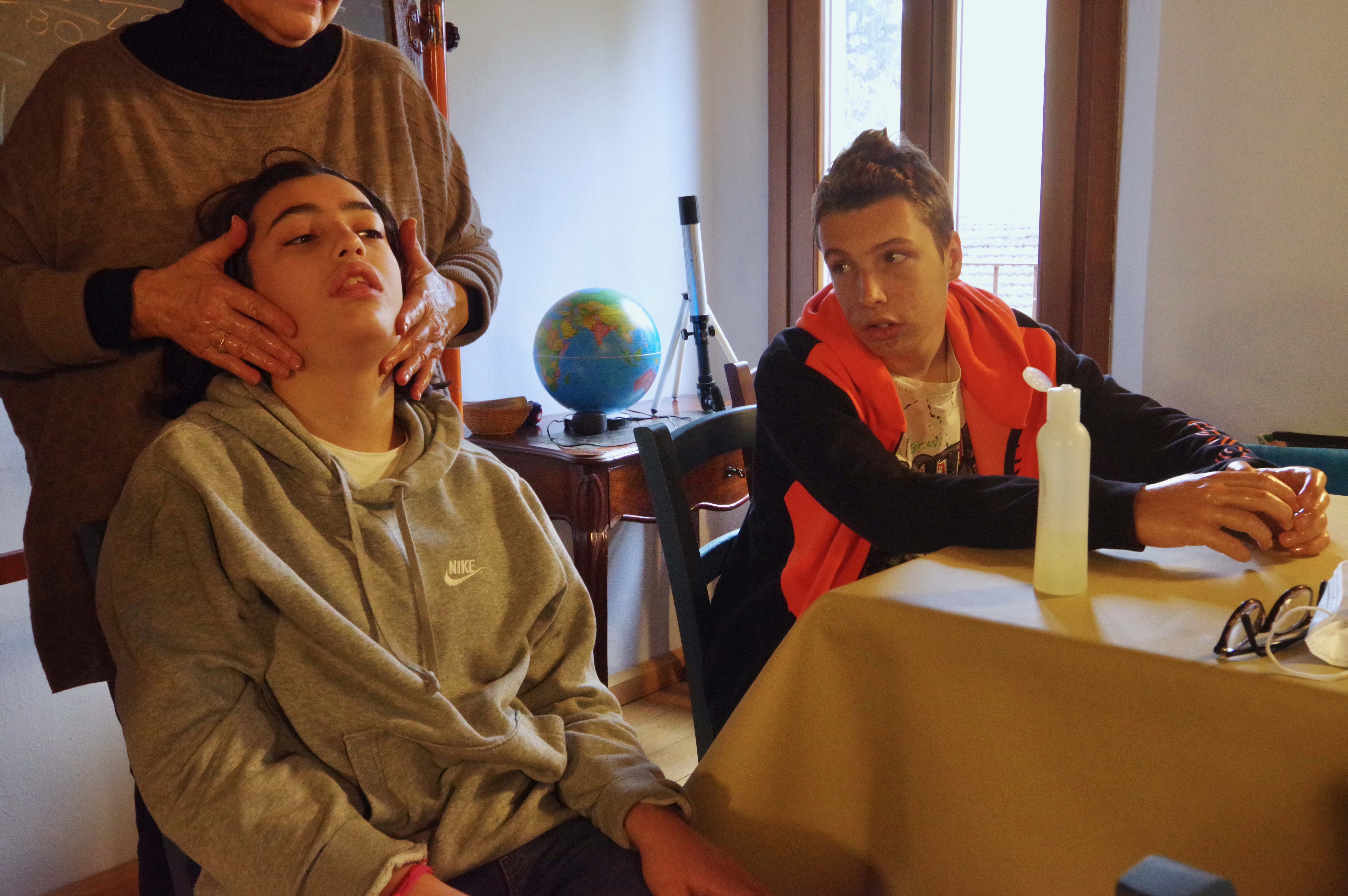 Da queste esperienze può nascere in alcuni ragazzi l’interesse per imparare l’arte del massaggio. In una stanza adibita con lettini professionali, una fisioterapista insegna a osservare le posture, a riconoscere e sentire le tensioni dei muscoli, e i principi di base per scioglierle delicatamente. E questa è anche l’occasione per sperimentare la possibilità, insieme al farsi curare, di imparare a prendersi cura.