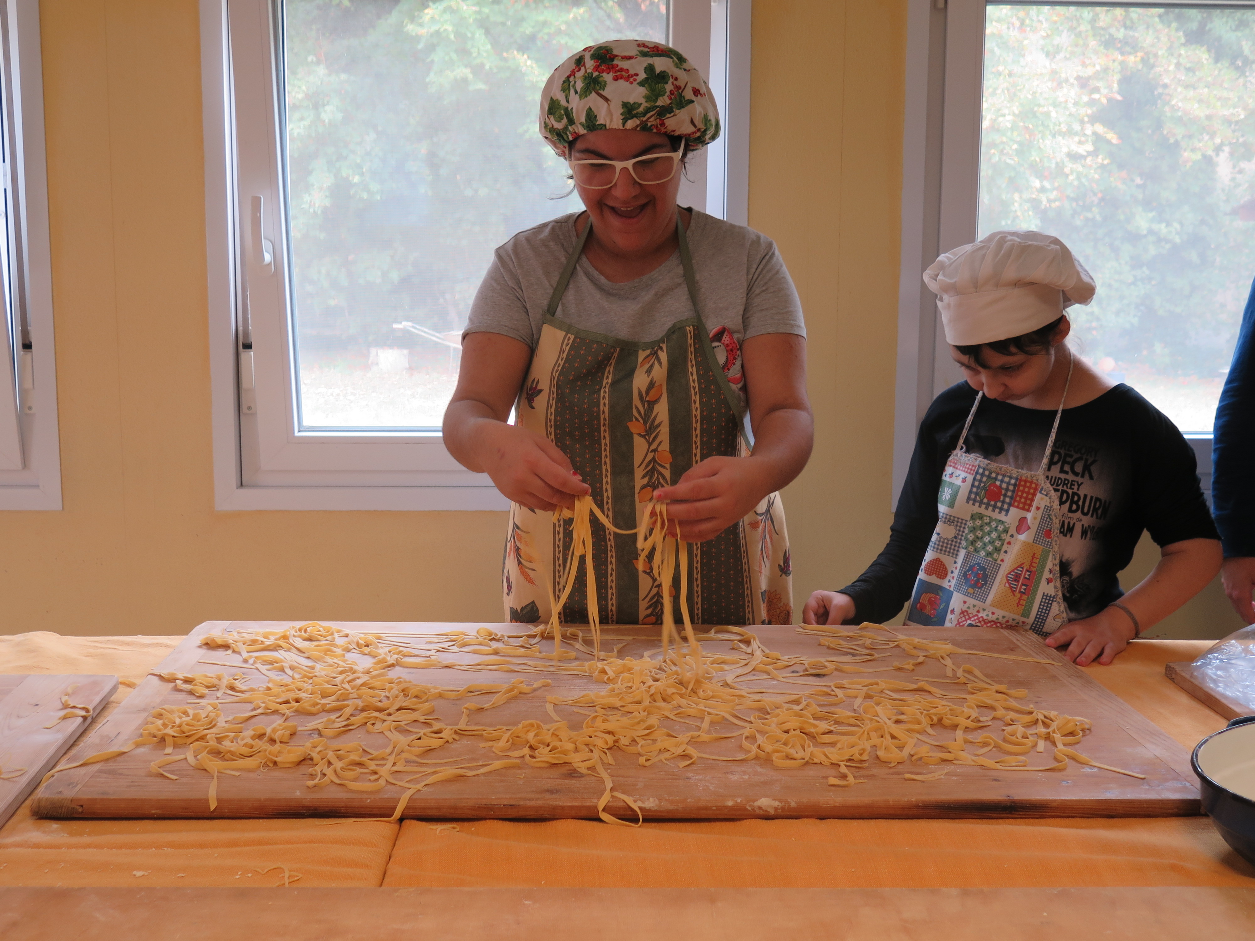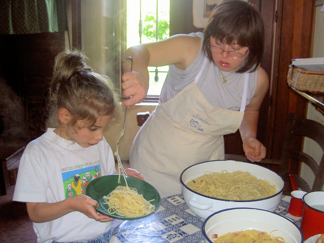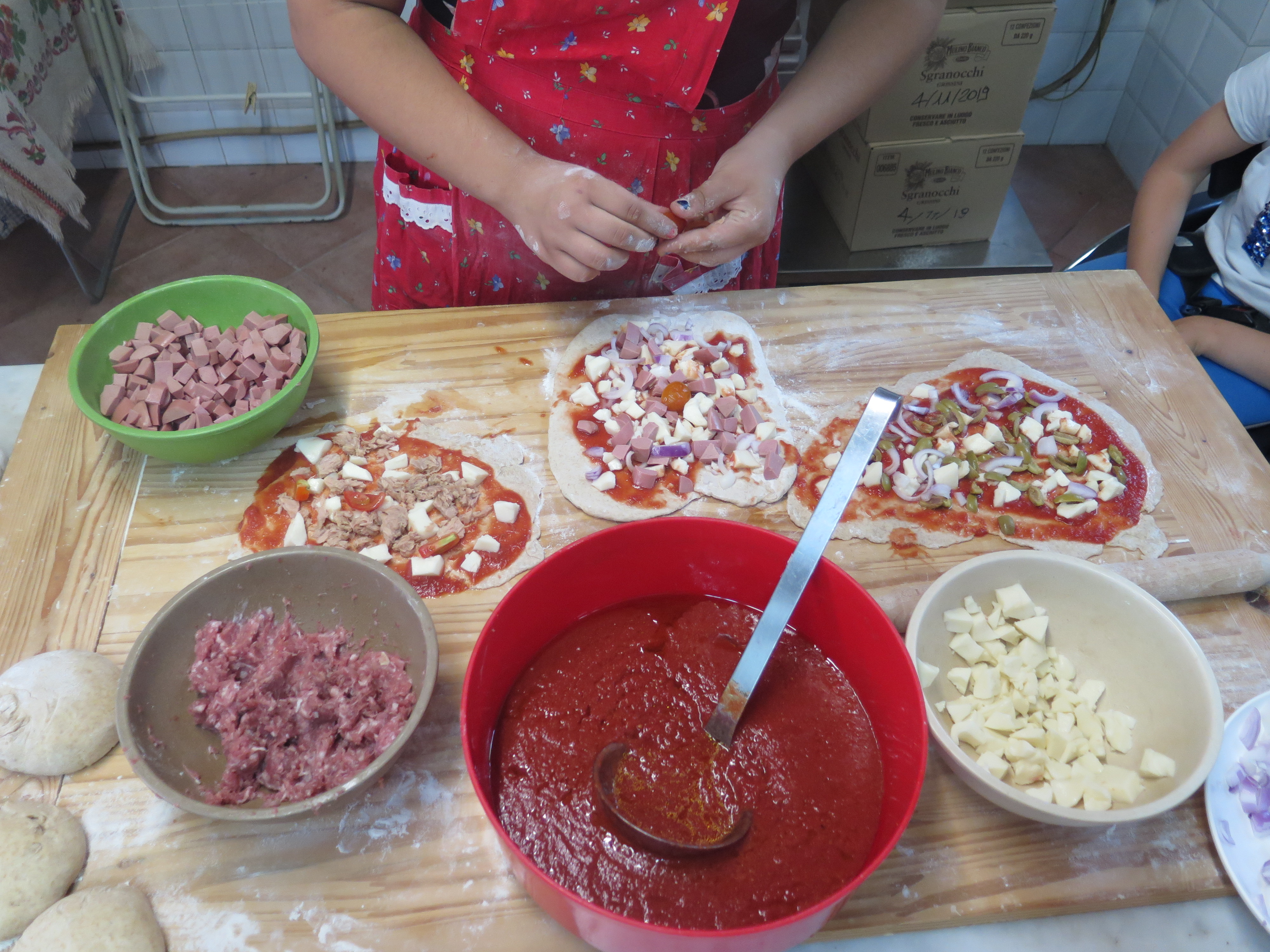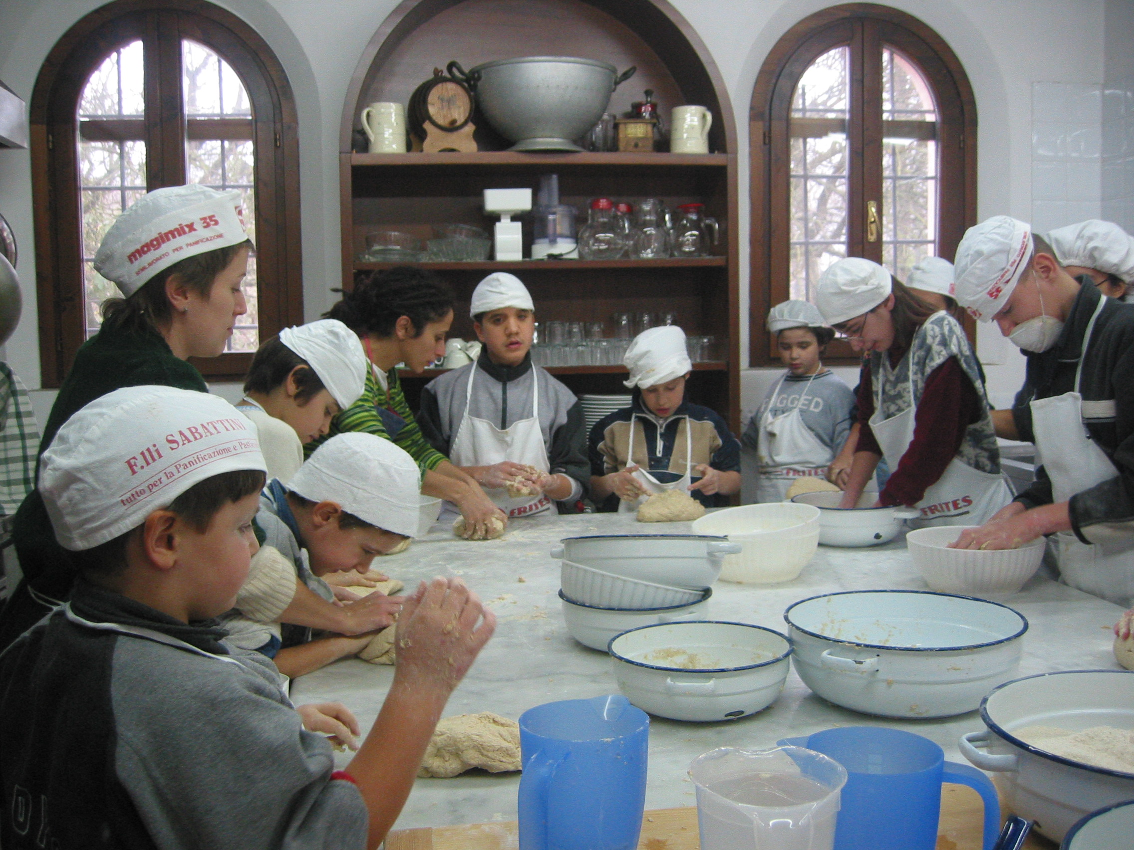 La disponibilità di un forno a legna permette poi di fare pizza e pane in grandi gruppi in cui ciascuno può trovare spazio in una parte delle preparazioni (dall’impastare piccole quantità di ingredienti fino al sorvegliare la “magia” della lievitazione).