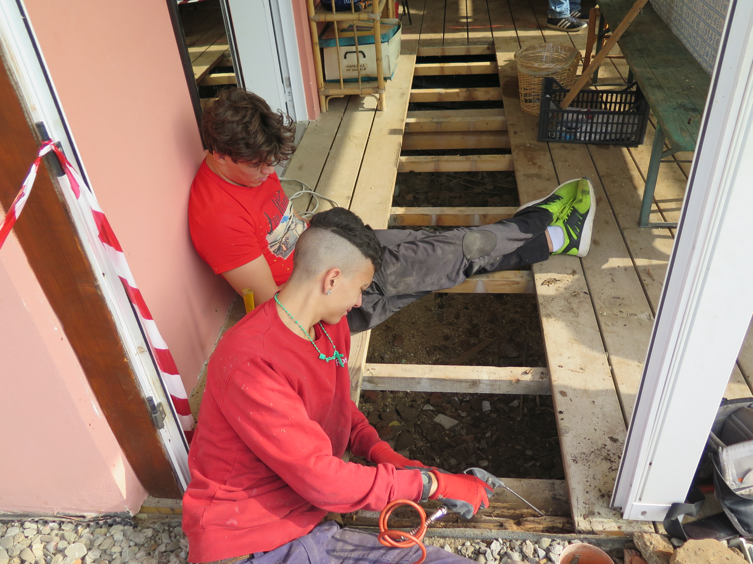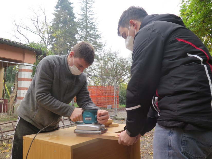 Nella grande struttura del Centro, il bisogno di manutenzione è continuo. Ogni giorno c’è qualcosa che richiede di essere riparato, proprio come ogni giorno si affrontano le riparazioni interne di ciascuno. Molti ragazzi si appassionano a questa attività, sperimentando il piacere di veder funzionare di nuovo qualcosa che si era inceppato o rotto. In questo ambito possono acquisire piano piano nozioni di base di meccanica, di sistemi elettrici o idraulici, di restauro. Ma sono anche contemporaneamente esposti alla metafora del far fronte agli eventi traumatici e dolorosi della vita, alla possibilità di riorganizzarli e uscirne rafforzati.